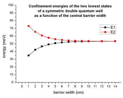 barrier layer that separates the two quantum wells and calculated the energies