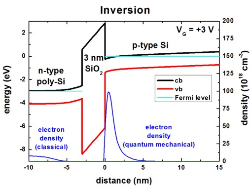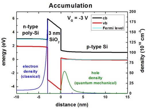 - quantum mechanical calculation in the p-Si channel,