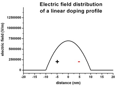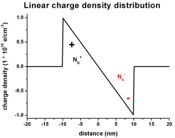 - the right region carries a linearly increasing  negative charge density (resulting from ionized acceptors NA-).