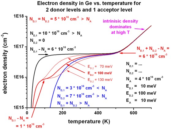 5) Compensated semiconductors - two donor levels and one acceptor level
