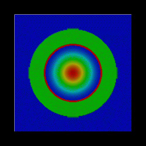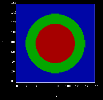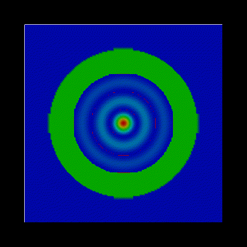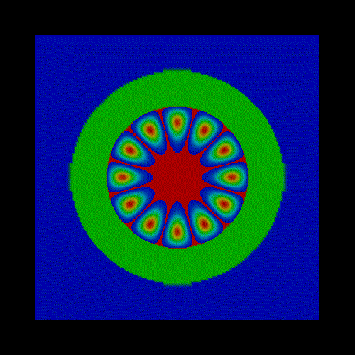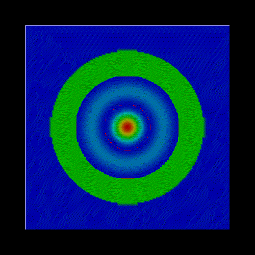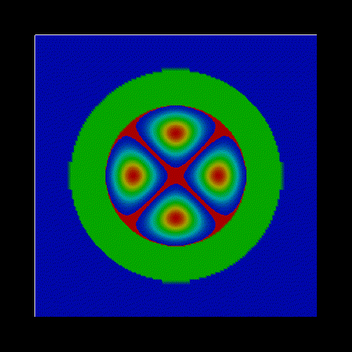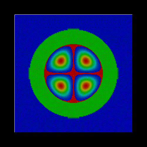 A cylindrical InAs quantum well (diameter 80 nm) is surrounded by a cylindrical GaAs barrier (20 nm) which is surrounded by air.