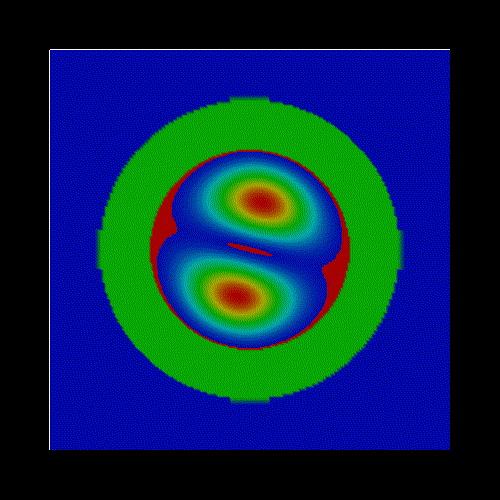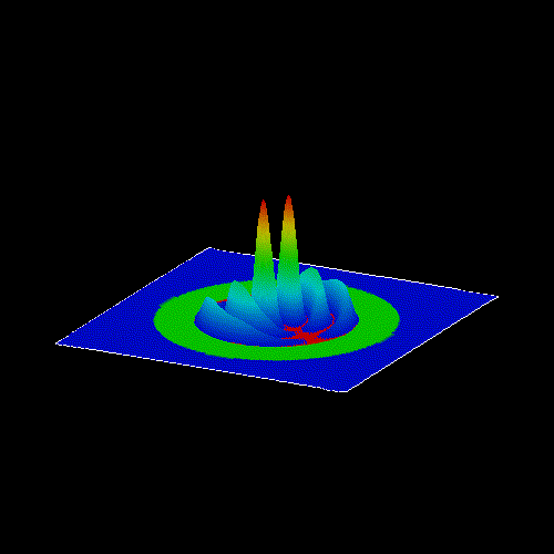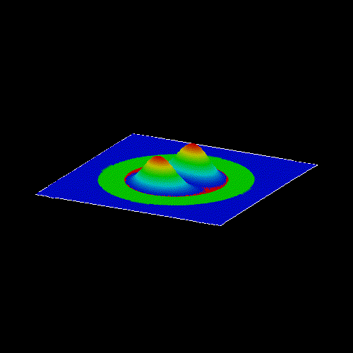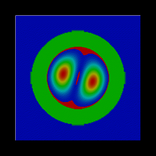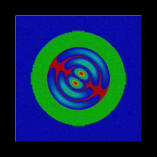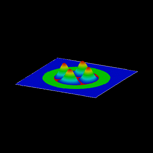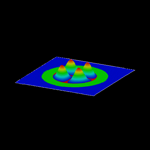 The following figures shows the square of the electron wave functions (i.e. psi²) of the corresponding eigenstates. They were calculated within the effective-mass approximation (single-band) on a rectangular finite-differences grid.