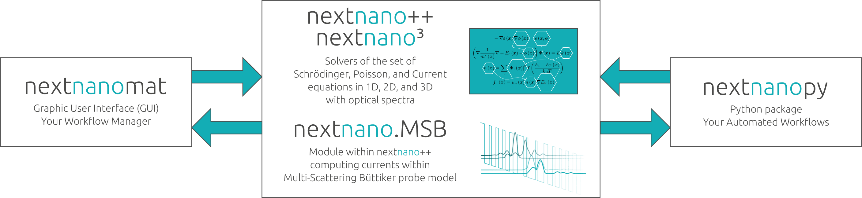 With the nextnano++ package, you gain access to advanced computational capabilities, which includes calculation of band structures, densities of states, charge distributions, wave functions, strain, piezo effects, optical spectra, quantized conductance, and much more.